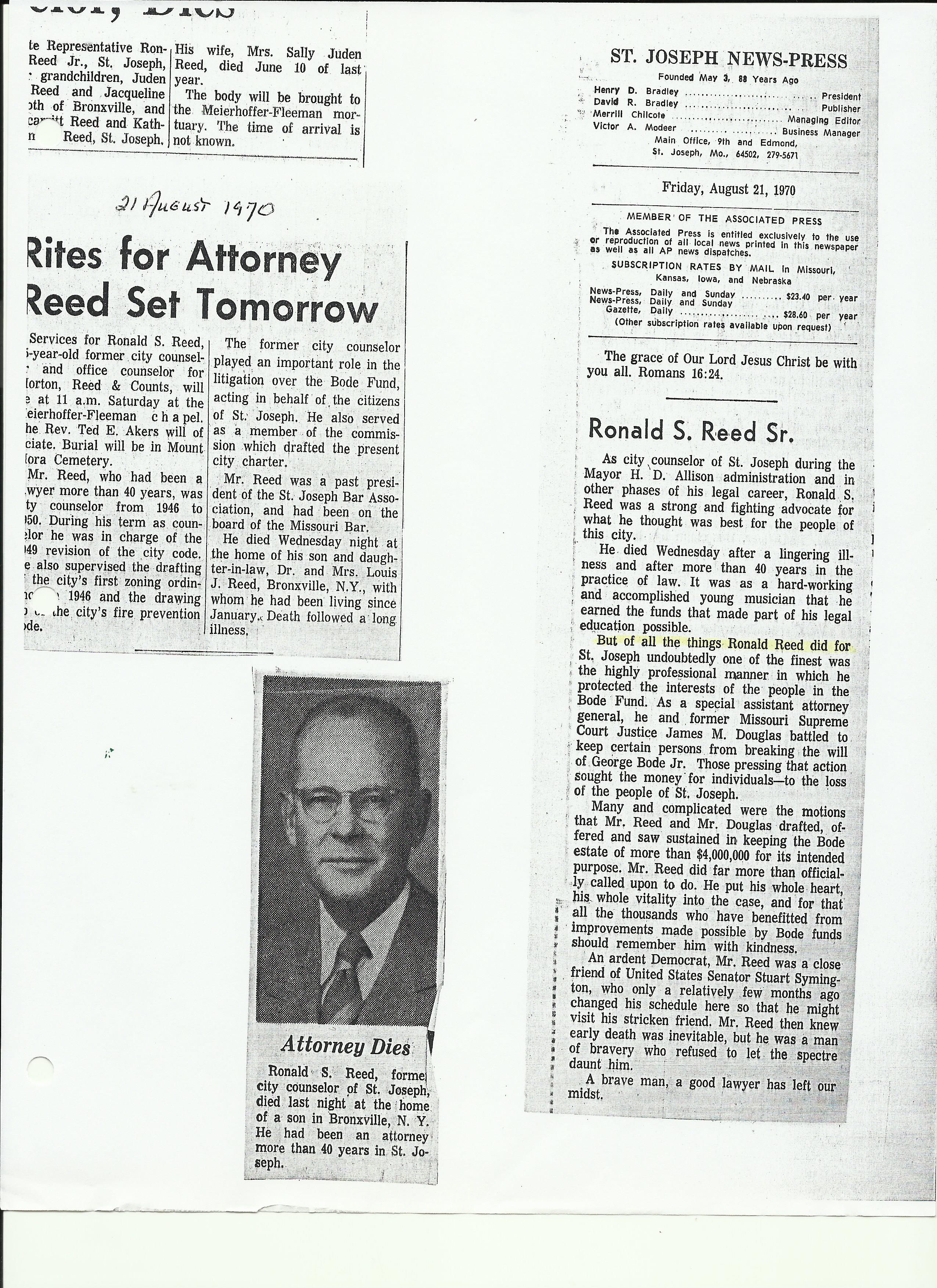 | Father of: Ronald Swain Reed Jr., Dr. L. Juden Reed |